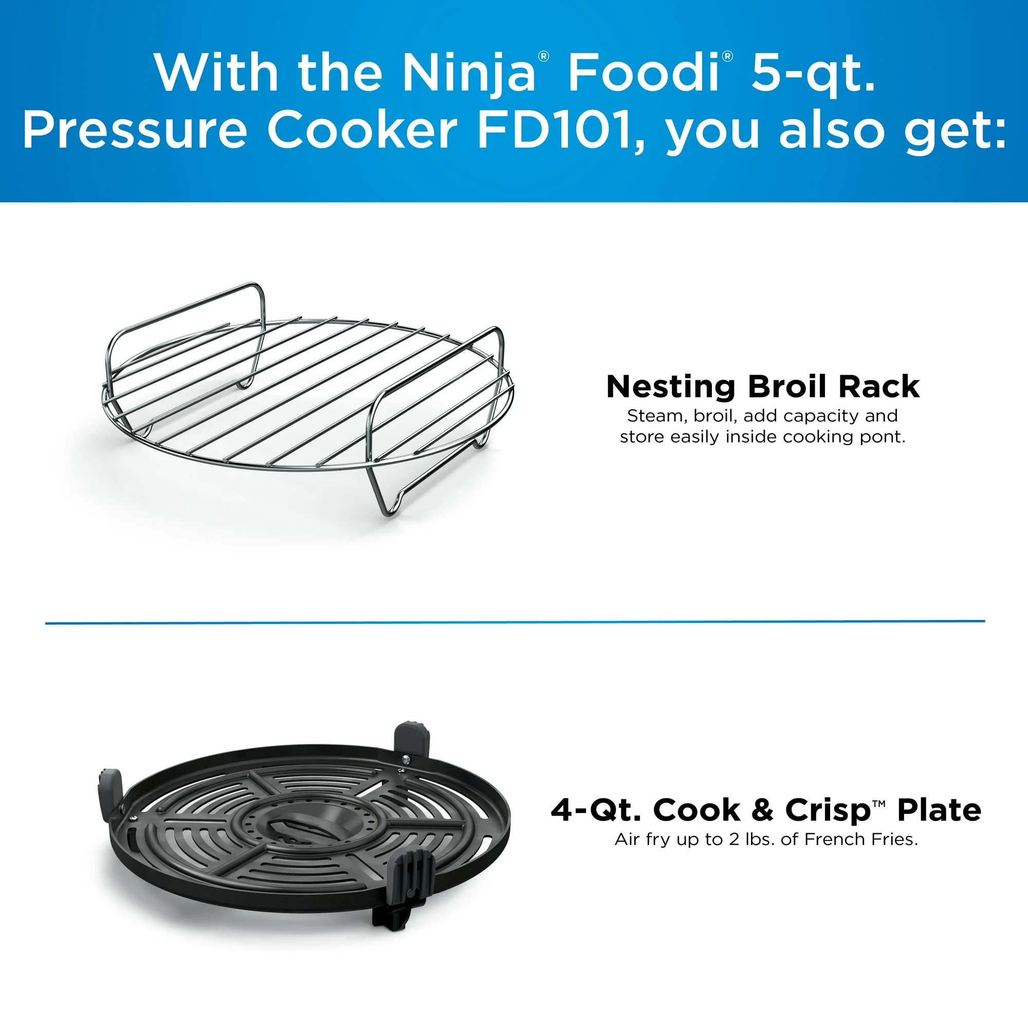 The Ninja® Foodi® 10-in-1 5-qt. Pressure Cooker + Air Fryer combines the best of pressure cooking and air frying all in one pot with TenderCrisp™ Technology. Get juicy, tender insides that have a golden, crispy finish. 10 cooking functions let you create endless family meal options. Included nesting broil rack lets you steam, broil, and add capacity, and it easily stores in the cooking pot.
